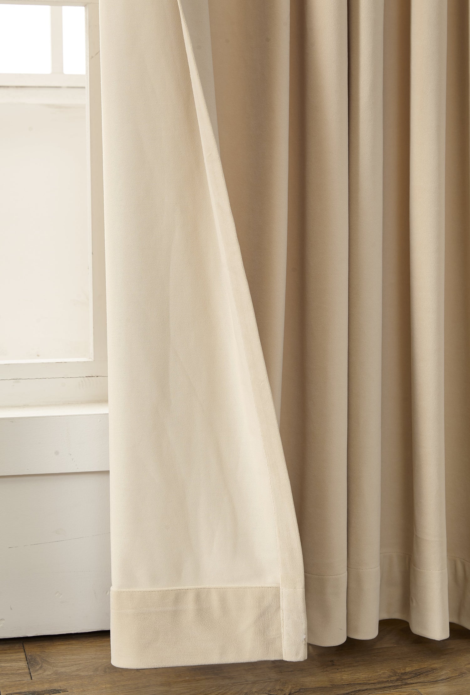 GEX Curtain Linen Bolonia Velvet Custom Curtains Blackout Drapes Pleated - #HV2028-1 Light Tan is backordered and will ship as soon as it is back in stock.