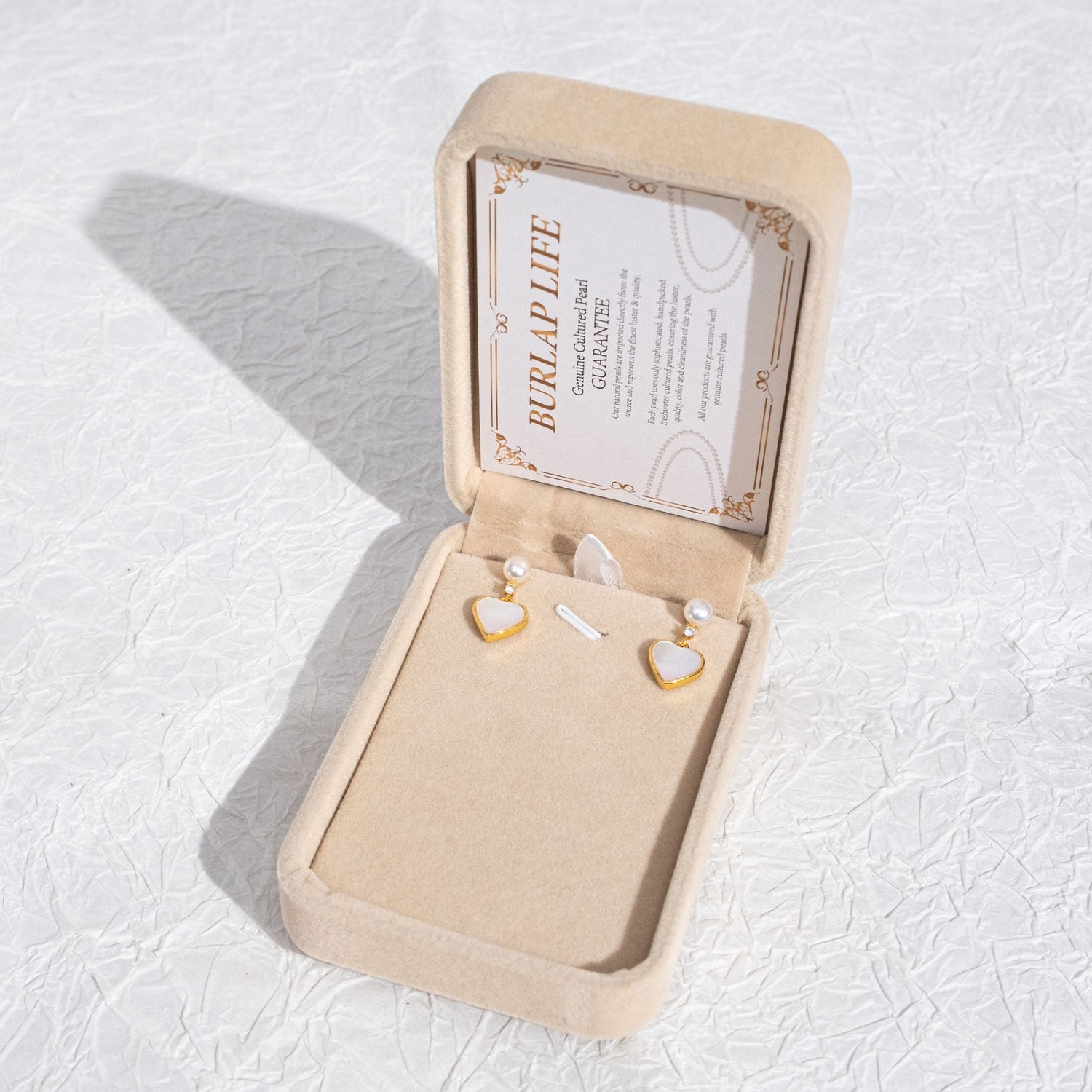 BURLAP LIFE Freshwater Pearl Mother of Pearl Earrings Gold Plated 925 Silver (Heart)