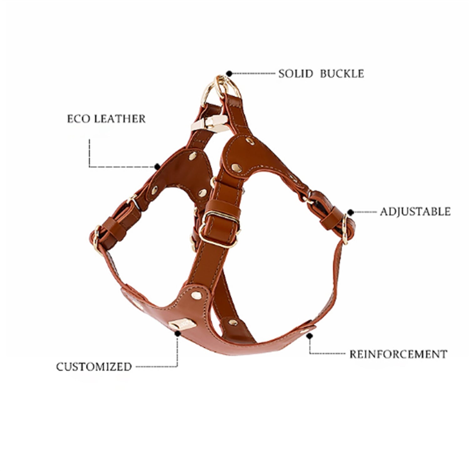GEX Personalized Adjustable Dog Leather Harness for Large Dog