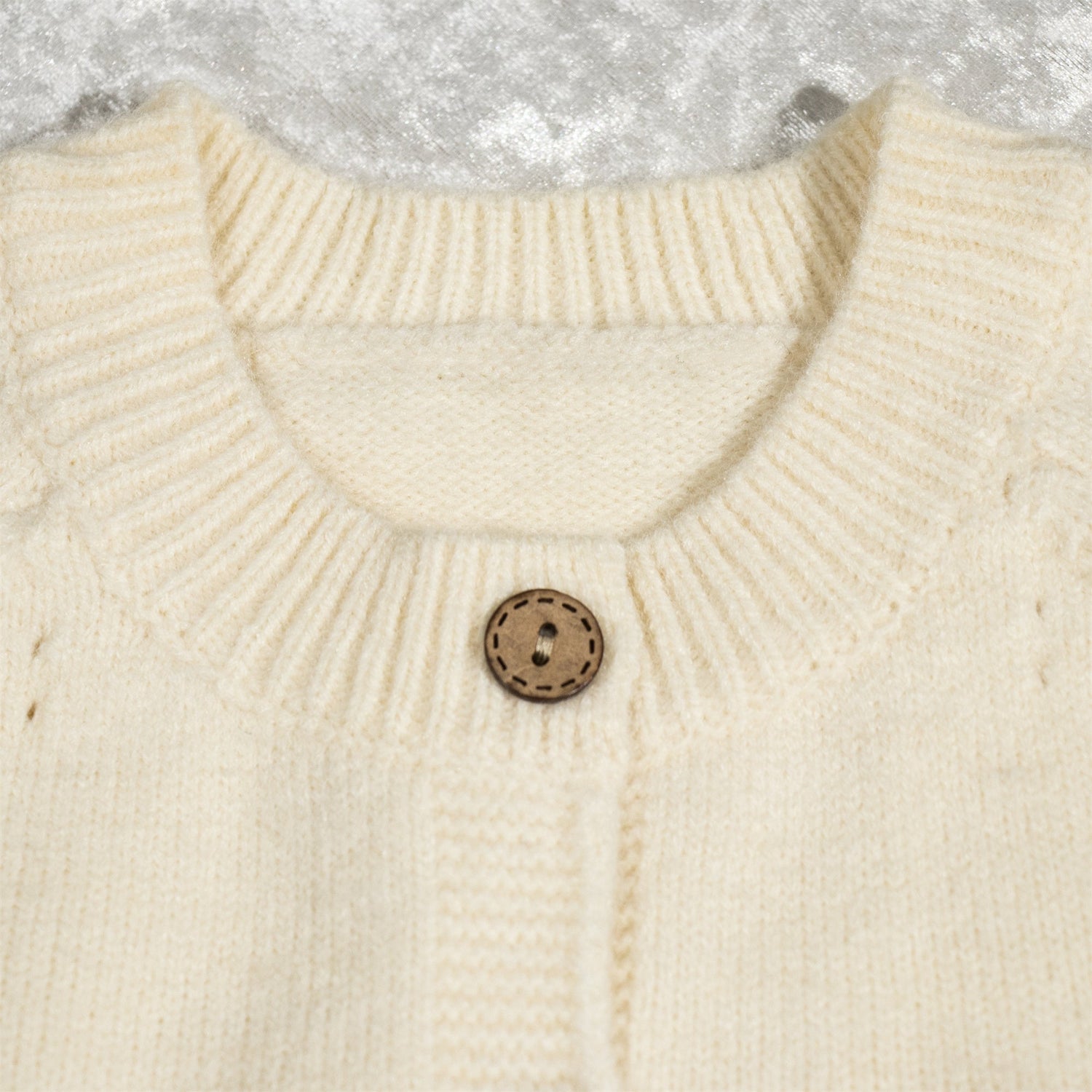 Wrap your little one in warmth and love with our delightful cotton cardigans. Crafted from pure cotton, these cardigans prioritize safety, ensuring your child stays cozy and comfortable. What sets our cardigans apart is the personalized touch – each one is uniquely hand-embroidered with your baby's name in soft wool yarn on the back.