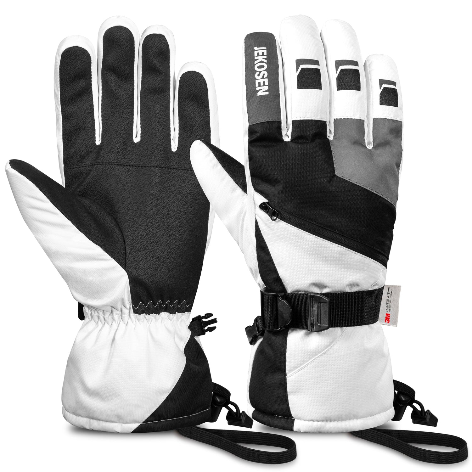 JEKOSEN White Ski Gloves Waterproof Touchscreen Snowboard Cold Weather Keep Warm Snow Gloves