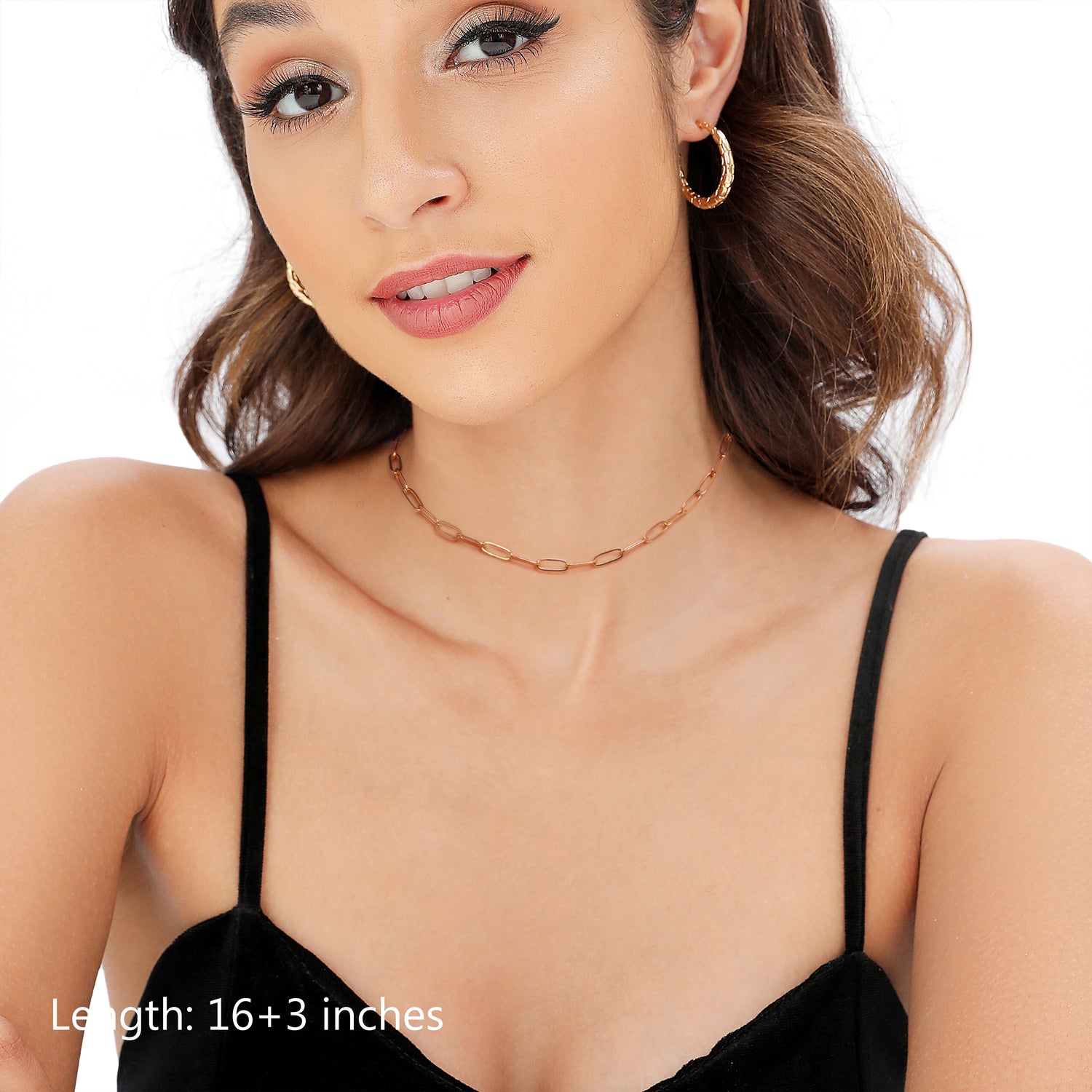 2. Necklace Specifications: Crafted with 14k gold plating over Brass, these necklaces boast a length of 15" and 18" with a 3" extender, featuring a paperclip choker and initial pendant. They are nickel-free and hypoallergenic, ideal for those with sensitive skin.