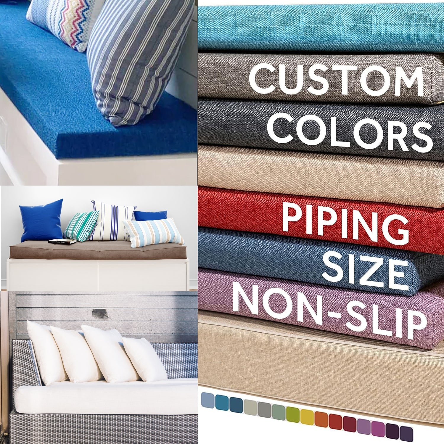 GEX Linen Blend Custom Size Bench Cushion Pads Multi Colors 70D High-Resilience Foam