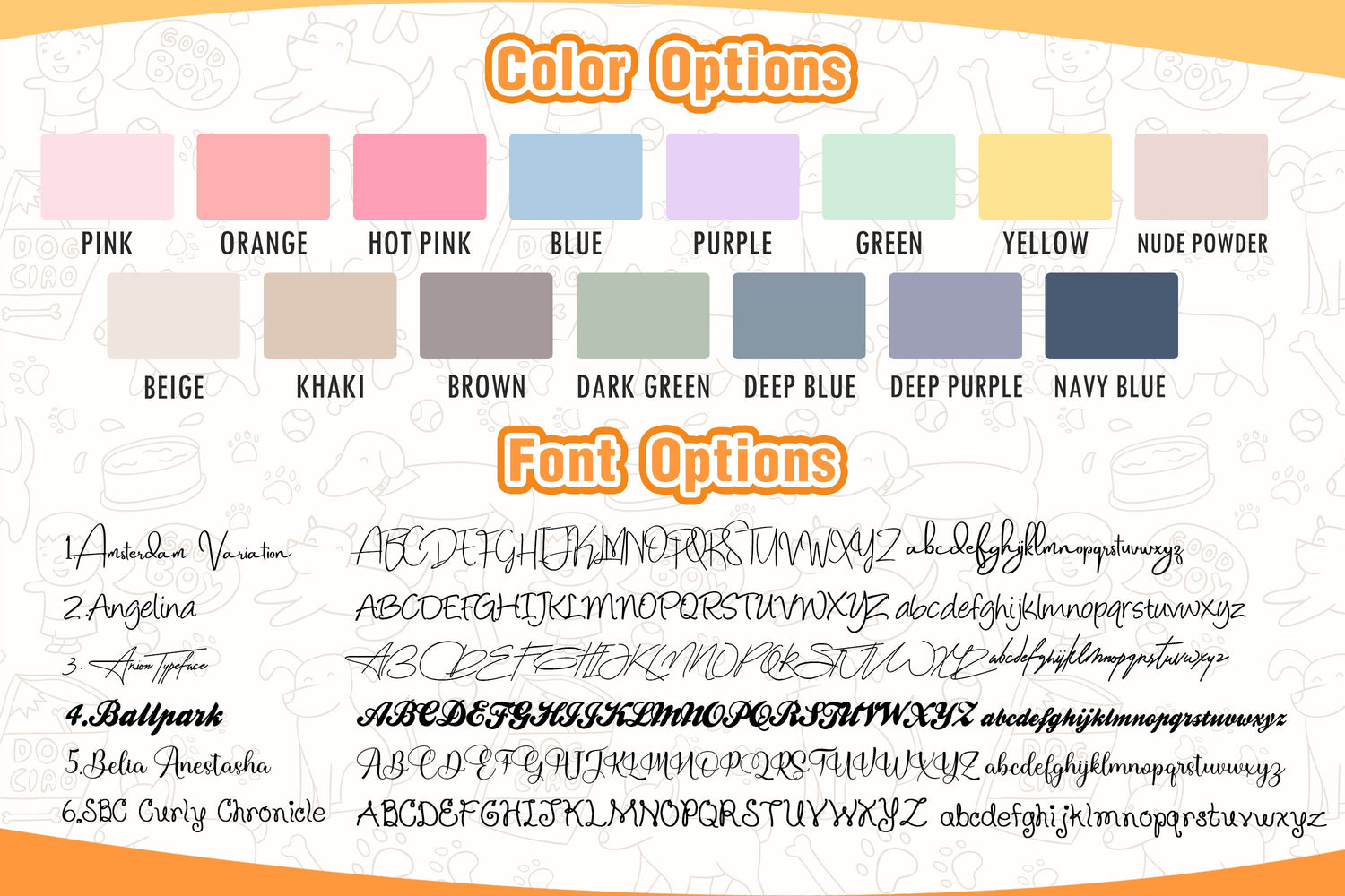 3. Enter your beloved pet's name and desired font in the personalization box.