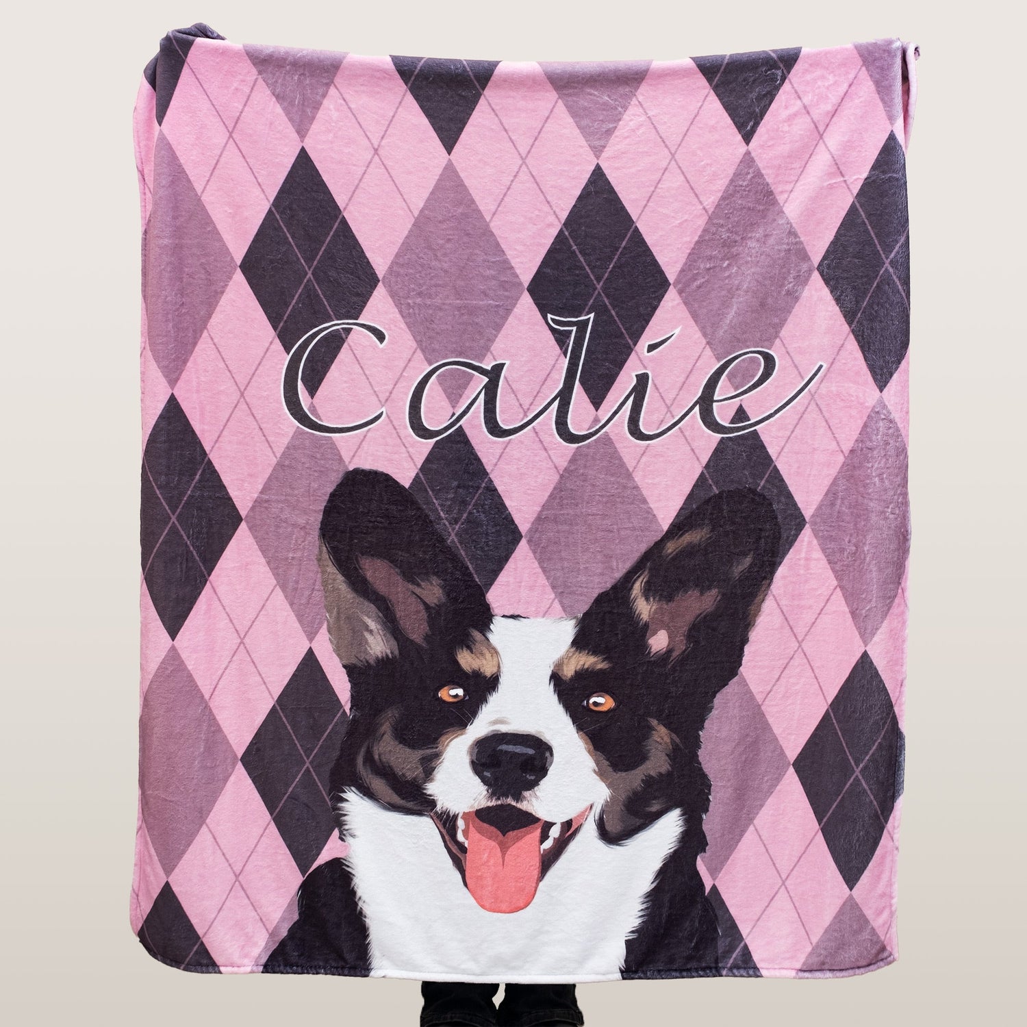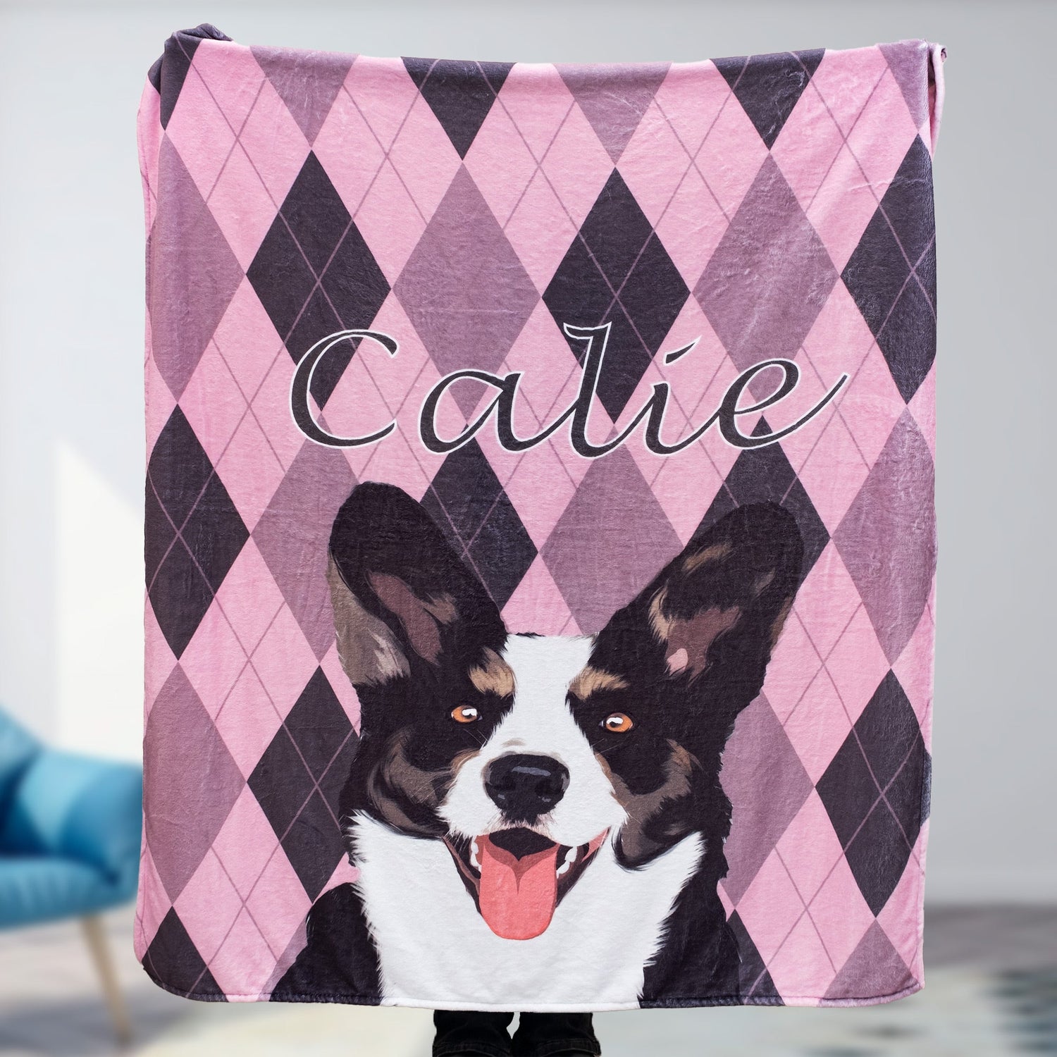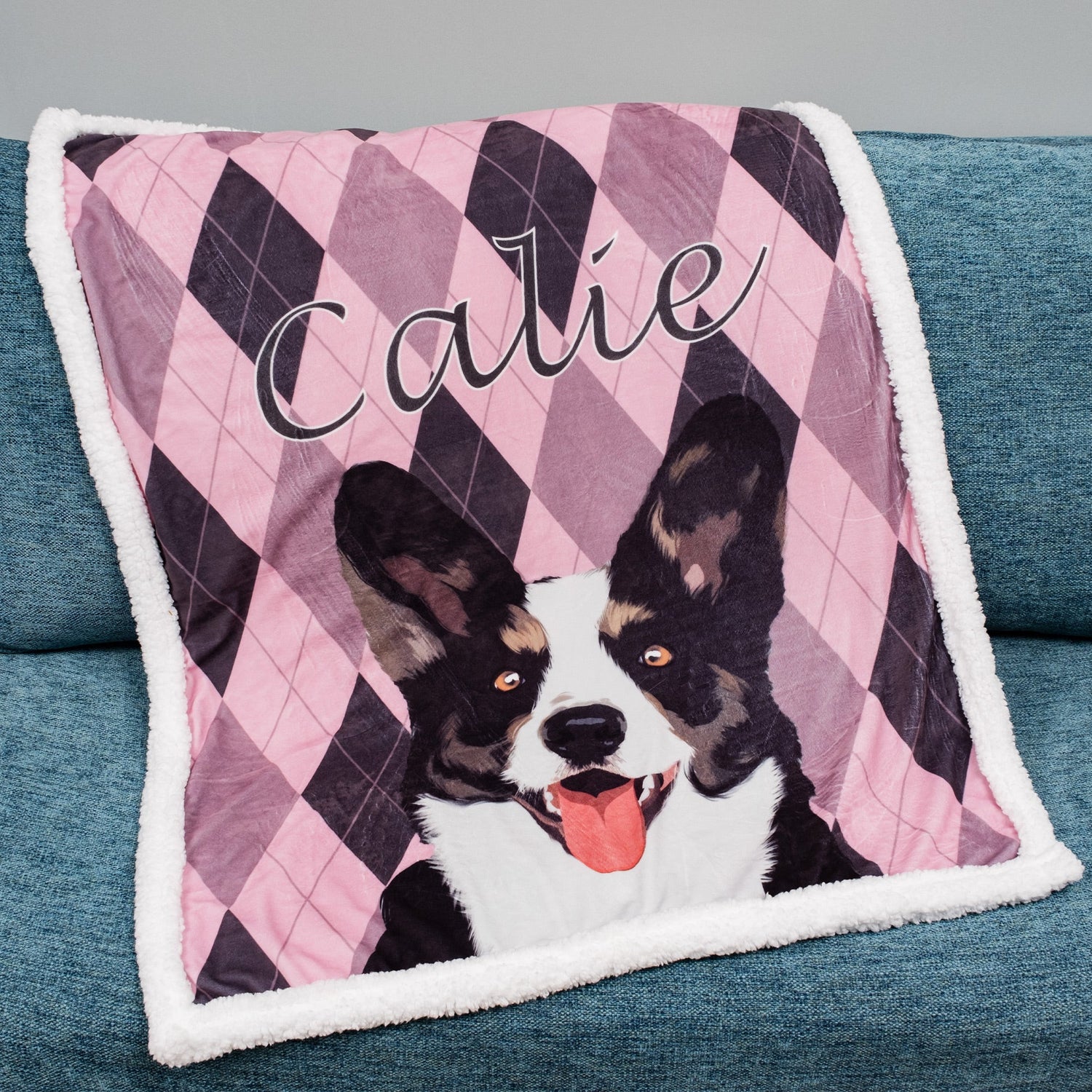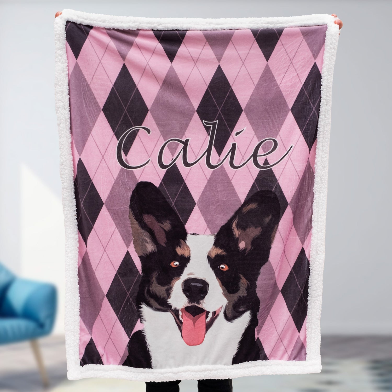 Celebrate the unique bond with your furry friend through this modern pet portrait blanket that seamlessly complements any room's aesthetic. This throw blanket featuring your cherished pet not only adds a personal touch to your space but also serves as a captivating conversation starter. This elegantly designed pet blanket, personalized with your PET'S NAME, is a perfect addition to your home and an ideal gift for dog lovers, pet sympathy, or as a thoughtful remembrance. Choose between plush or sherpa fabric to tailor the blanket to your preferences.