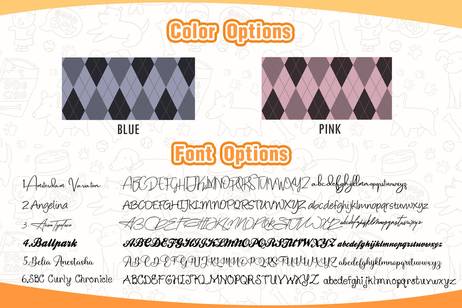 3. Enter your beloved pet's name and desired font in the personalization box.