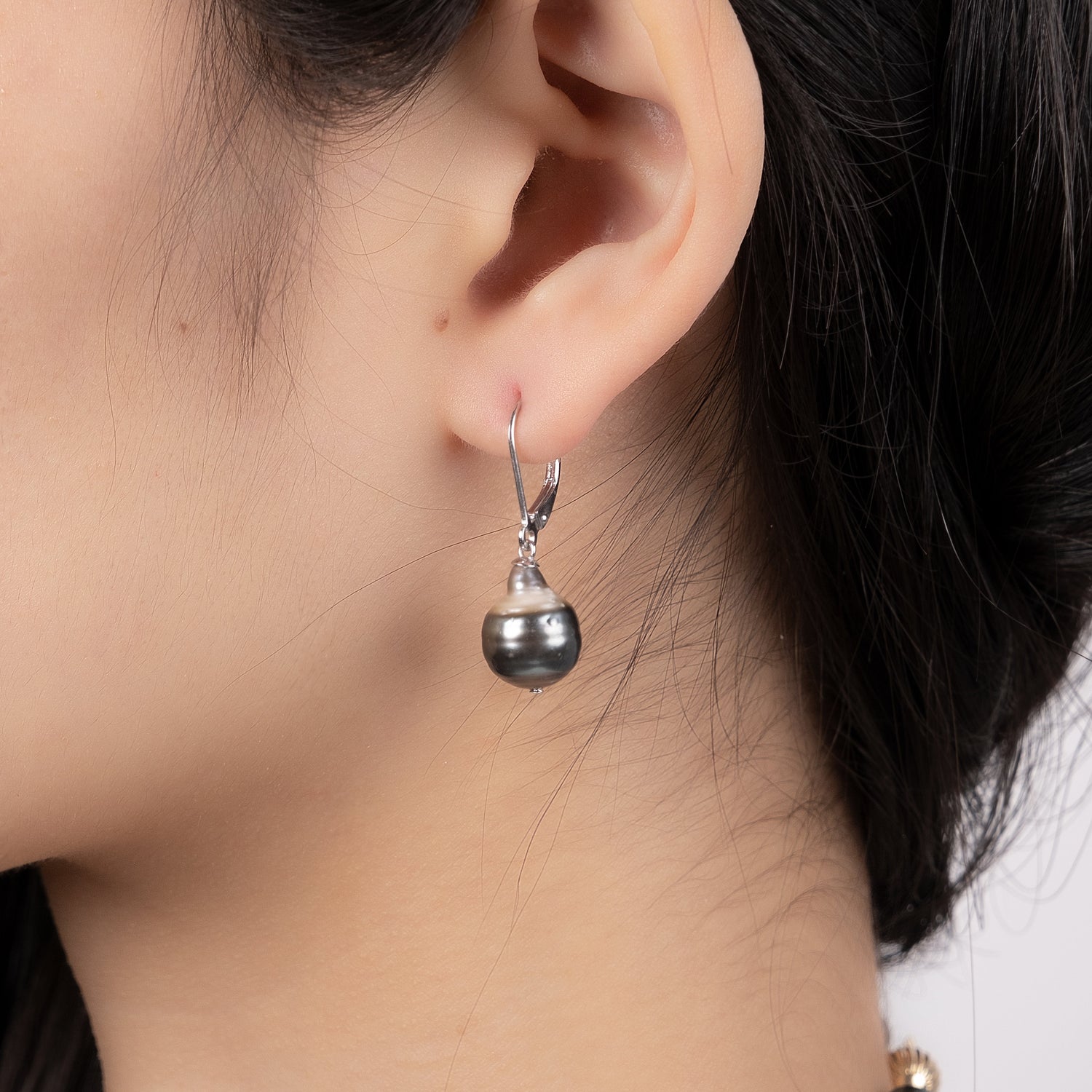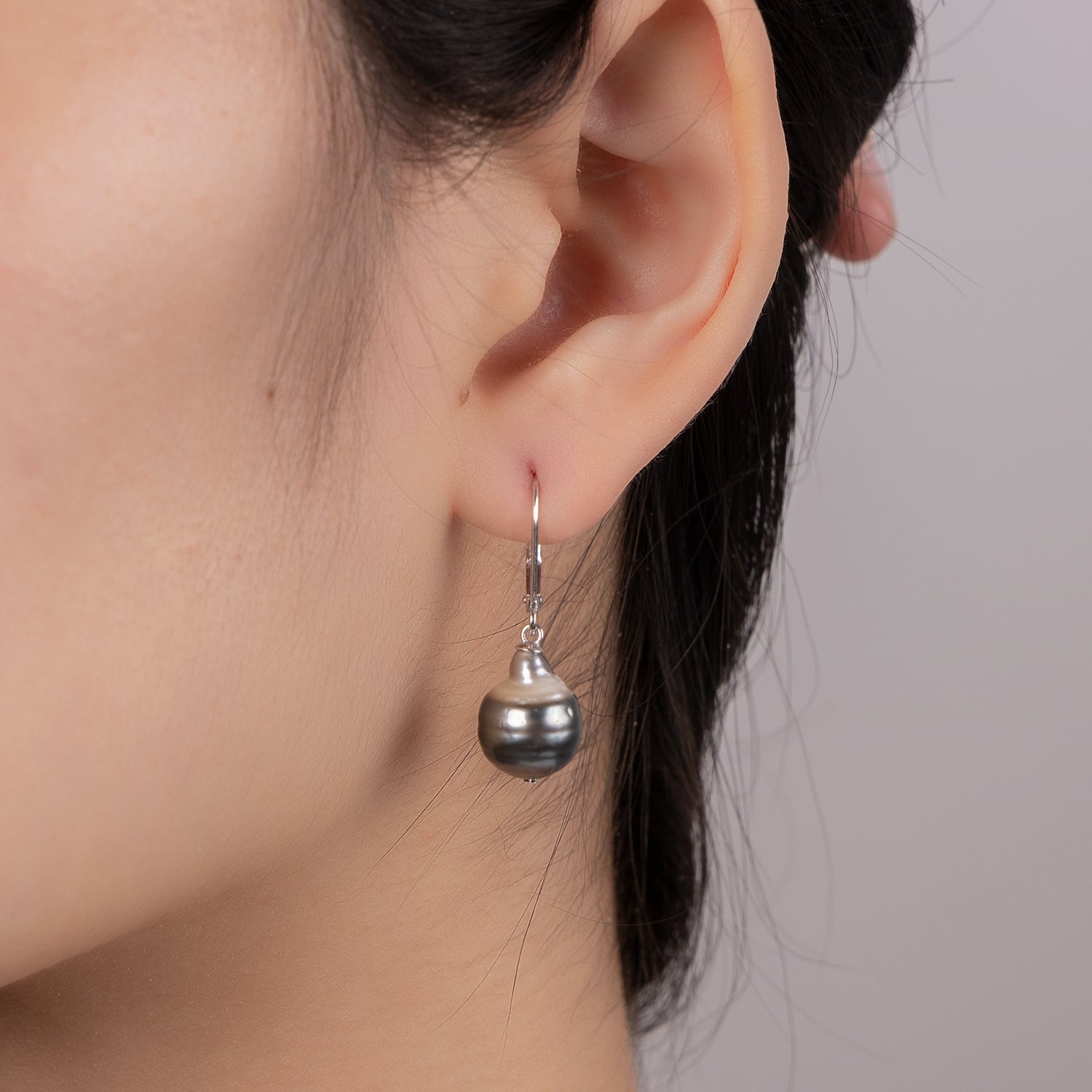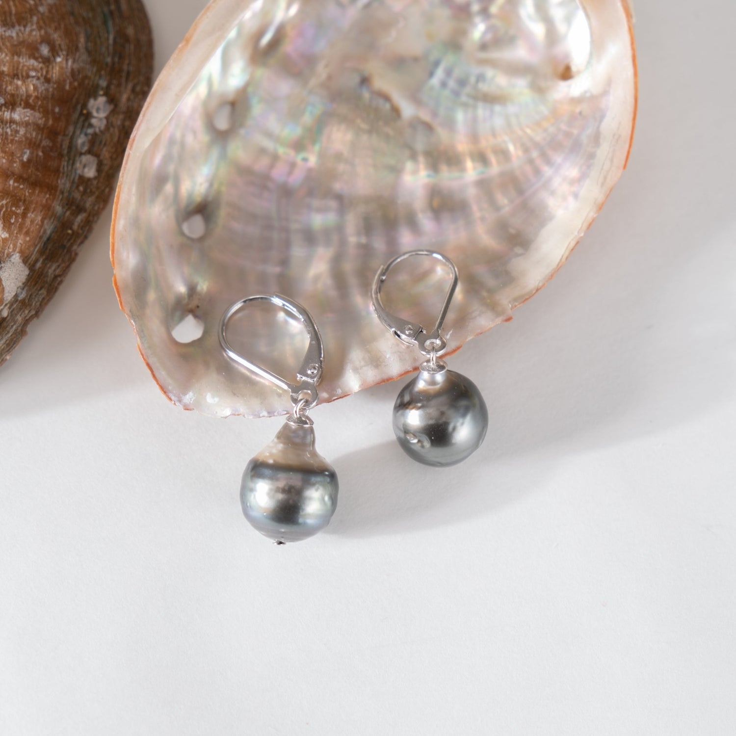 BURLAP LIFE 925 Silver Tahitian Pearl Lever Back Earrings - Advanced Design!